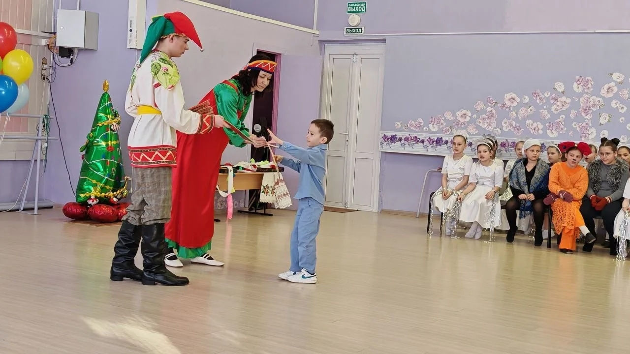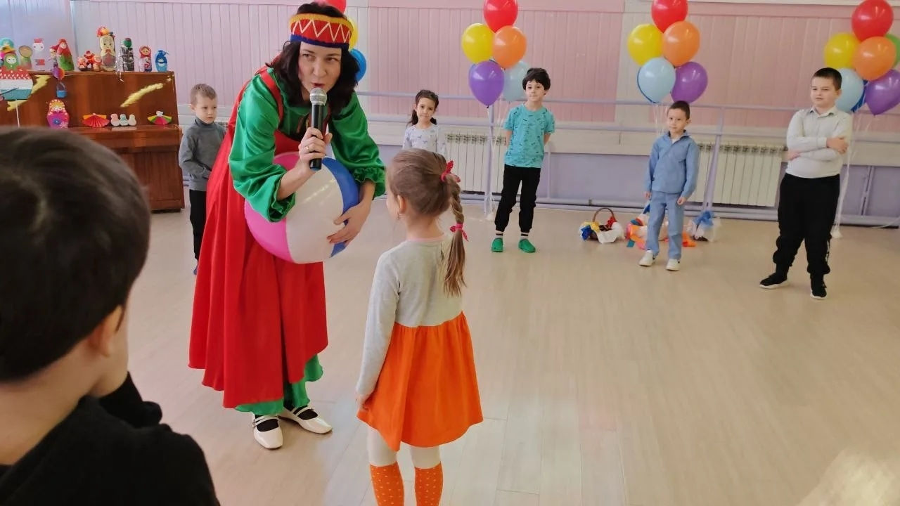 Наши неутомимые ведущие – скоморох Ерошка да Матрешка Матрёна – закружили всех в вихре игр да забав!